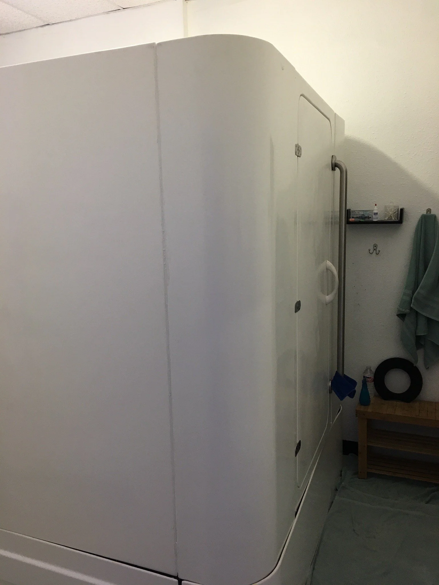 Our float pod has a rounder and more futuristic shape, and also allows for more control over the lights and music, while still providing plenty of space.